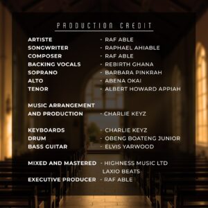 Real name Raphael Ahiable, Raf Able delivers a performance brimming with anointing, inviting listeners into a deeper reflection on divine grace. Perfect for quiet contemplation or communal worship, this track is set to become a staple in gospel playlists.