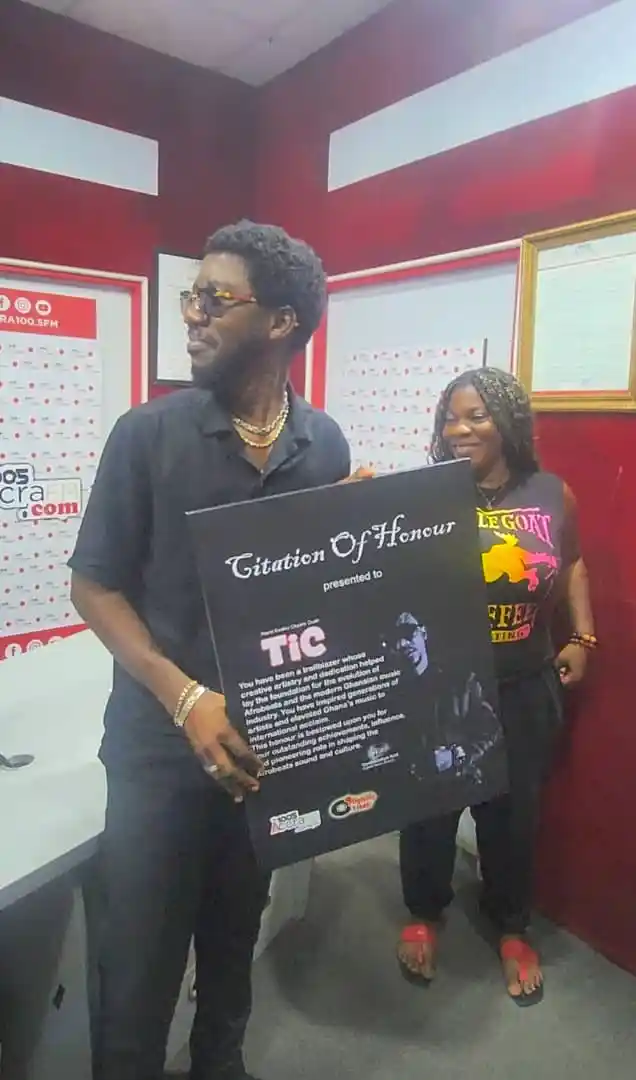 The citation presented by Accra FM’s host of Highlife Time, Oyoko Dehyie Kofi to TiC read, “You have been a trailblazer whose creative artistry and dedication helped lay the foundation for the evolution of Afrobeats and the modern Ghanaian music industry.”